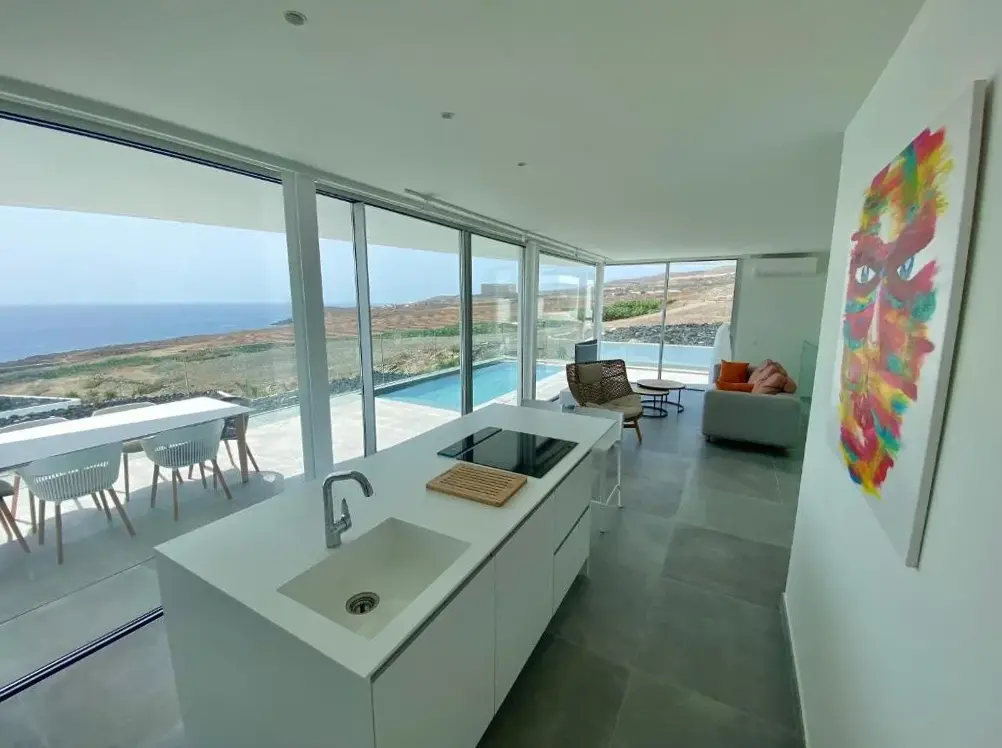 Miejscowość była w zacisznym sposobie wzrostu z czasem, chociaż chodzisz do najbliższej restauracji lub baru przez 10 minut, a na plażę przez 15 minut willa z idealnym widokiem na morze nie mogła spełnić oczekiwań. Każdego ranka budzenie się na taras, aby obserwować morze, było piękne, jeśli dobra widoczność miała szczęście, więc zobaczyliśmy La Gomera. Pani Petra bardzo przyjazna i dla nas bardziej dla nas wyjątkowa, że pochodzimy z tego samego kraju. Gdy tylko poprosiliśmy ją o taksówkę do Las Americas o 23:00, poznała nas iw ciągu 5 minut mieliśmy transport tam i później. Krótko mówiąc, zakochaliśmy się w willi.